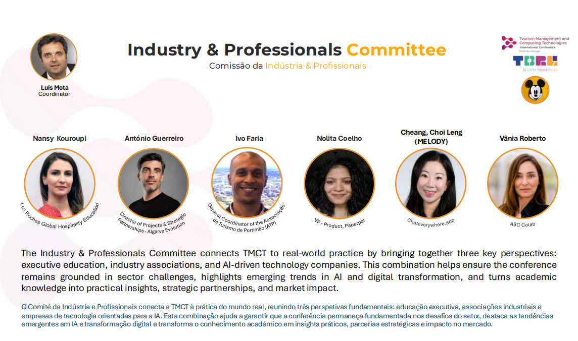 TMCT’26 為 Tourism Management and Computing Technologies International Conference,將於 2026 年 11 月 2 日至 7 日舉行。大會聚焦人工智慧、自動化、數位轉型、教育、研究方法與可持續發展等前沿議題,並設有國際講座、博士研討、Masterclass 及主題論壇等多元交流環節,匯聚學術界與產業界的多方觀點。